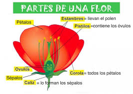 Reproducción: la mayoría de las plantas se reproducen por las flores.(Estudiar las partes de la flor en el dibujo).